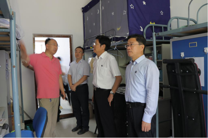 赵险峰、赵丁选一行先后抵达西校区学生大食堂、浴池、学生公寓七组团、东校区中快餐厅、燕鸣湖餐厅等区域进行了检查指导,向有关负责人员详细询问了迎接师生返校用餐、洗浴、住宿工作的准备与安排情况,实地查看了家具备品准备、设备设施维护、周边环境清理等状况。