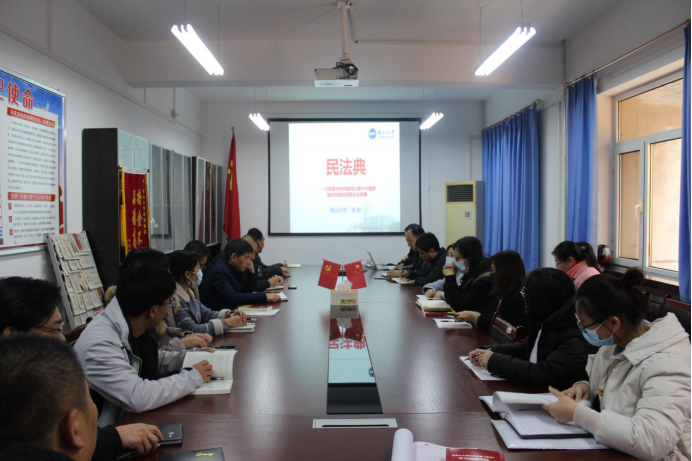 11月19日下午,后勤服务中心邀请文法学院张明老师作《民法典》专题辅导,科级以上干部和支部委员参加了学习。会议由后勤服务中心副主任王耀峰同志主持。