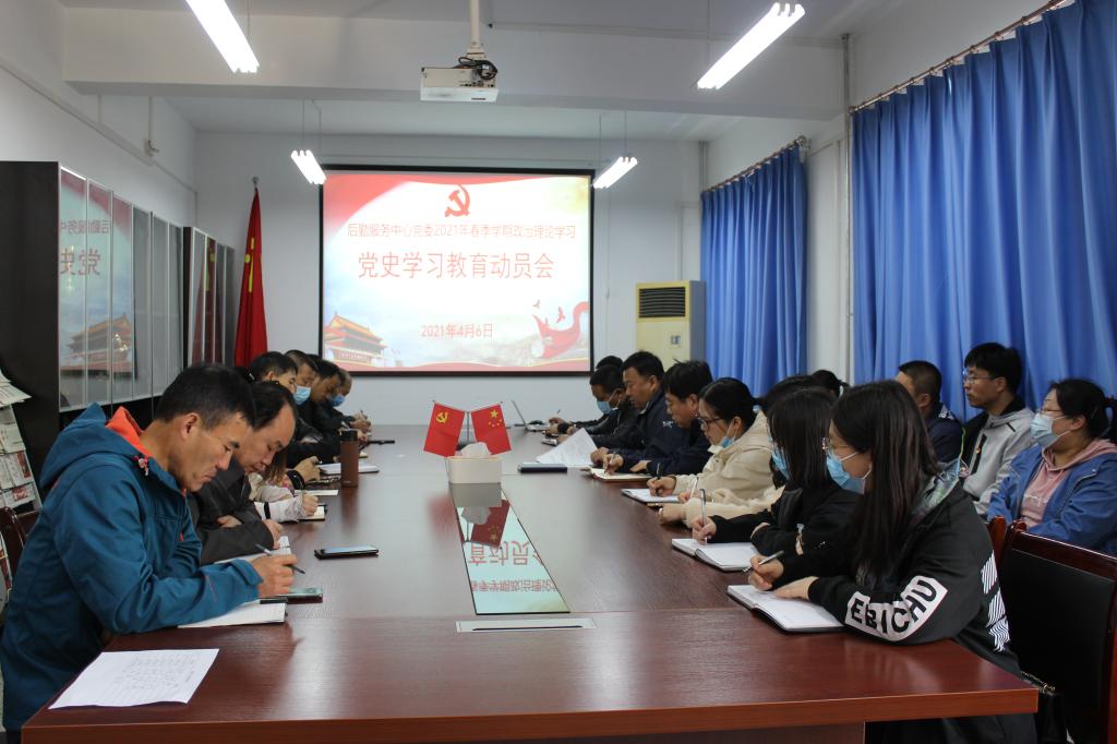 会上,党委书记董立峰传达了学校党史学习教育动员大会会议精神,带领大家学习了习近平总书记在党史学习教育动员大会上的重要讲话,结合后勤服务中心实际,对后勤开展党史学习教育进行了部署。