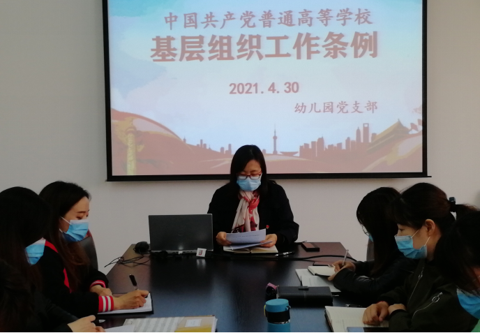 4月30日下午,幼儿园党支部组织全体党员在第二幼儿园会议室学习了《中国共产党普通高等学校基层组织工作条例》。