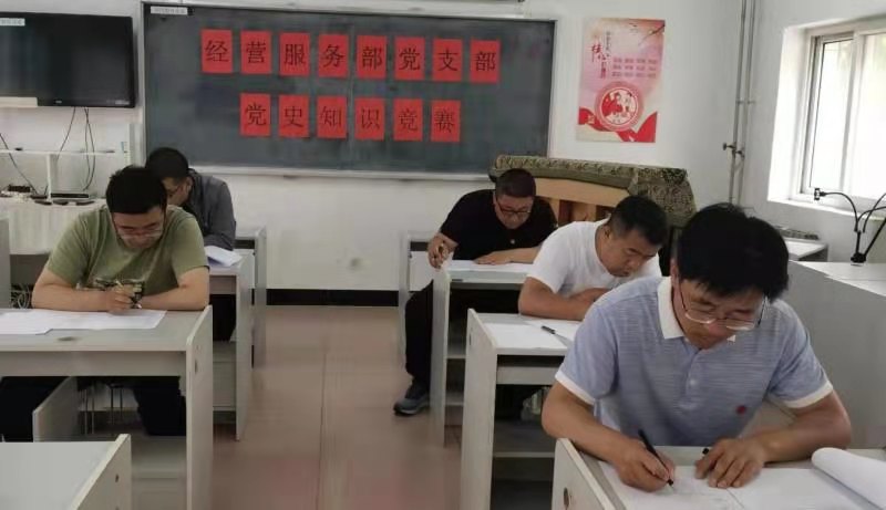 为了总结党支部本学期党史学习教育和学党史系列活动的成果,考察和检验全体党员对党史的掌握和理解情况,2021年6月17日上午9点,经营服务部党支部组织全体党员在燕大社区会议室开展党史知识闭卷答题竞赛活动。