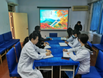 10月15日,校医院与房产管理部联合党支部在校医院三楼会议室,开展党员讲党史活动。