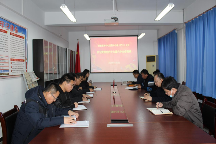 会上,党委书记董立峰带领大家一图速览十九届六中全会公报,从审议通过的两个重磅文件,百年奋斗的重大成就,百年奋斗的历史意义,百年奋斗的历史经验和党中央的号召等多个方面进行了详细解读。