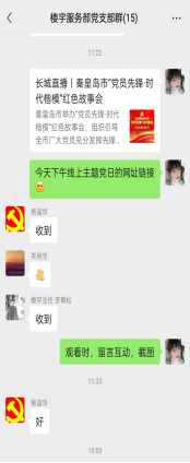 6月29日下午3点,在支部书记李青松通知的号召下,全体支部成员通过长城新媒体直播,观看秦皇岛市“党员先锋•时代楷模”红色故事会。