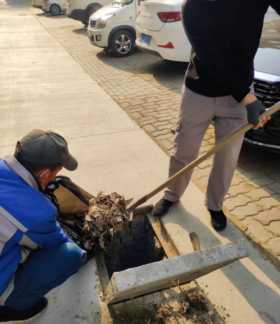 春季学期开学以来,在后勤服务中心房产管理部督导下,家属区保洁公司组织员工逐步清理雨水井和单元雨搭,保障雨季排水通畅。