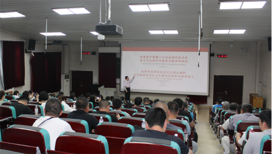6月13日下午,后勤服务中心党委在东校区四教108教室举办了学习贯彻党的二十大精神专题报告会。马克思主义学院院长、学校党的二十大精神党委讲师团成员柴勇教授应邀作了题为《学习党的二十大精神,深刻领悟“两个确立”的决定性意义》的报告。报告会由后勤服务中心党委书记、主任董立峰主持,后勤服务中心90多名党员参加了学习。