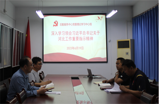 2023年6月19日下午,后勤服务中心党委理论学习中心组召开会议,深入学习习近平总书记在河北考察时的重要讲话精神。会议由后勤服务中心党委书记、主任董立峰主持,后勤服务中心党委委员参加会议。