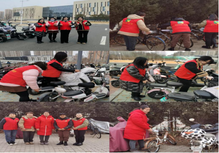 创设美丽校园,维护校园环境是我们每一位职工应尽的义务。由于学生们上课着急,总会有一些车子摆放的不整齐,影响了校园的美化和学校的文化建设。这次活动,党员们分两个小组分别对东校区和西校区的自行车、电动车进行了摆放整理。