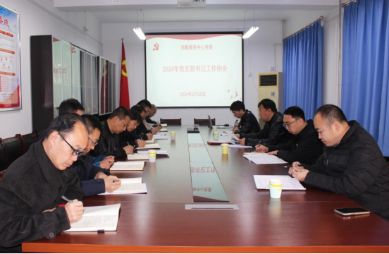3月28日,后勤服务中心在二楼会议室组织召开2024年第一次党支部书记工作例会。会议由后勤服务中心党委书记董立峰主持,中心处级党员领导干部、党委委员、党支部书记和专职组织员参加会议。