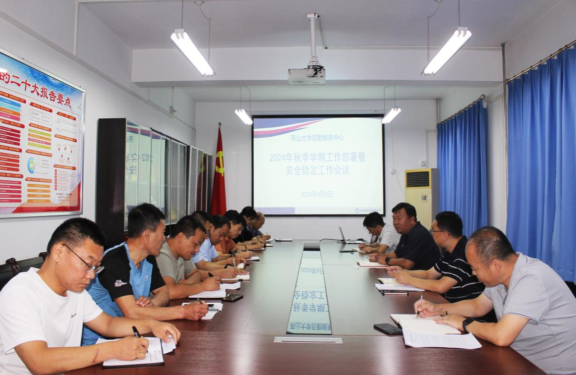 9月2日上午,后勤服务中心在后勤二楼会议室召开秋季学期工作部署暨安全稳定工作会议。会议由后勤服务中心党委书记、主任董立峰主持,中心全体处级、科级干部及业务机构负责人参加会议。