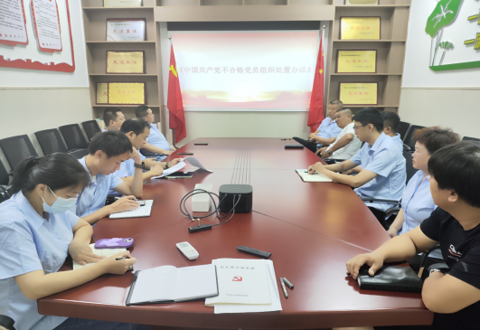 9月1日,后勤服务中心餐饮服务部党支部组织全体党员专题学习《中国共产党不合格党员组织处置办法》(以下简称《处置办法》)。