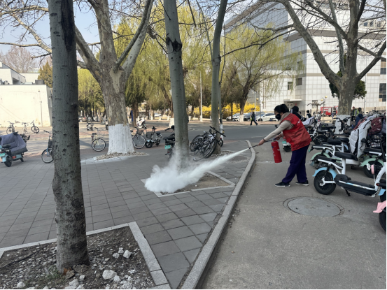 为深入贯彻执行后勤服务中心2025年1号督查通知的有关要求,增强经营服务部全体员工的消防安全意识,提升火灾应急处置能力。经营服务部4月1日下午组织部门所有员工在东校区二舍自助充电桩旁开展消防知识培训及消防演练,邀请安全工作处消防专业技术人员倪艳杰等同志为员工们讲解消防知识,重点围绕火灾的成因、常见的火灾隐患、各类灭火器材的适用范围和正确使用方法、火灾发生时的应急疏散等方面进行了详细阐述。在讲解过程中,技术人员特别结合经营服务部的工作环境和特点,如服务楼的电器设备使用、充电桩的防火要点、重点分析可能存在的消防安全风险,提出了针对性的预防措施和应对方法,并指导经营服务部员工进行实际操作。